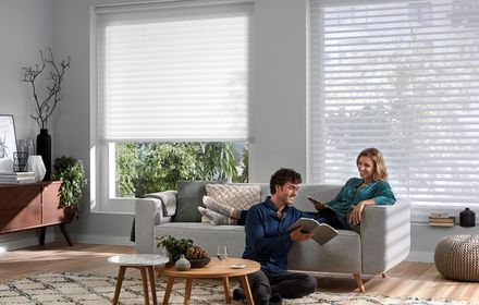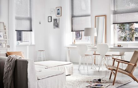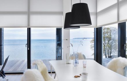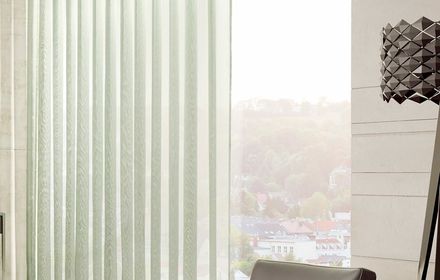 Die textile Innenbeschattung ist in dauerhafte Falten gelegt und verleiht als praktischer Faltstore jedem Fenster das gewisse Etwas.