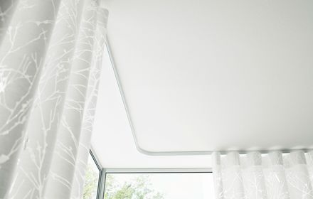 Die Vorhangschienen sind auch erhältlich als deckenbündiges, vollintegriertes Schienensystem zur flexiblen Bestückung mit Vorhanglauf, Abhängesystem oder LED-Lichtband.