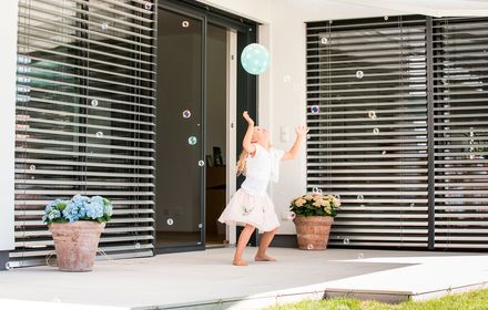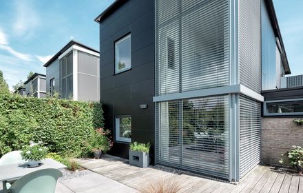Raffstoren sind höchst effiziente Beschattungssysteme mit hohem Anspruch an Design und Funktion. Die schwenkbaren Aluminiumlamellen dosieren bei jedem Sonnenstand das Tageslicht und den Schatten genau nach Bedarf – egal ob zur Arbeit oder Entspannung.